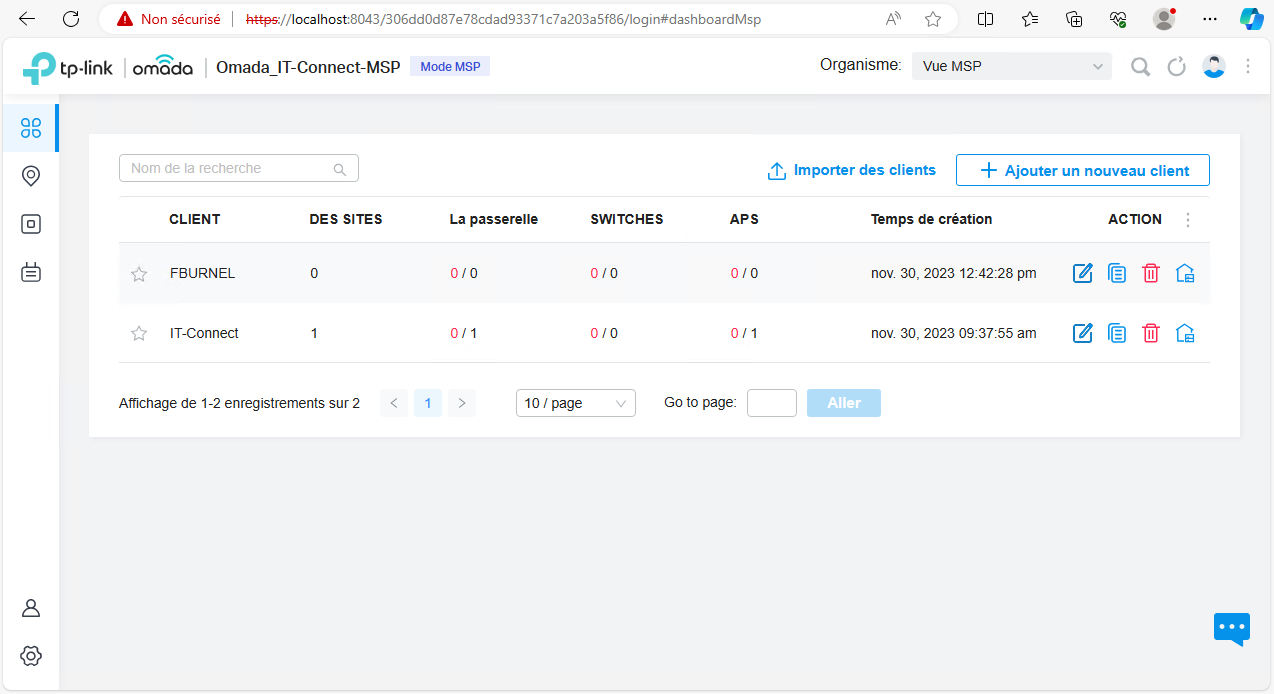 Le contrôleur Omada dispose d'un mode MSP (Manage Service Provider) qui va nous permettre de créer et gérer plusieurs tenants (organisation) et dans chaque tenant plusieurs clients (ou sites) sur un même contrôleur. En tant que prestataire de services ou opérateur, vous pouvez avoir un contrôleur Omada unique qui sera mutualisé entre plusieurs clients. Bien entendu, chaque tenant (organisation) et chaque client sont cloisonnés dans des environnements différents.