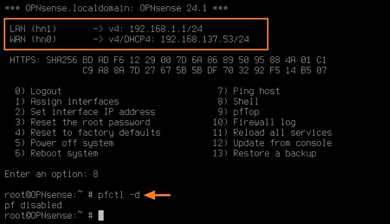 Par défaut, l'interface d'administration d'OPNsense est accessible uniquement depuis l'interface LAN, pour des raisons évidentes de sécurité. Vous devez donc vous connecter sur l'interface LAN du firewall pour effectuer l'administration. Si c'est impossible, sachez que vous pouvez administrer temporairement OPNsense depuis le WAN. Ceci implique de désactiver la fonction de firewall.