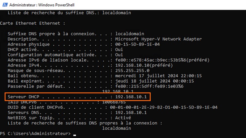 Pour tester le bon fonctionnement du serveur DHCP, vous devez connecter une machine sur le réseau LAN de votre firewall.