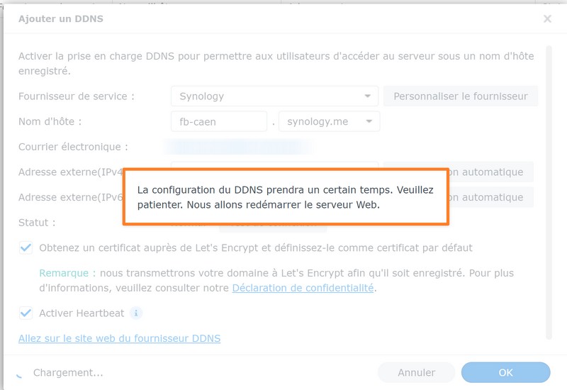 Dans le cas où le NAS n'a pas d'intérêt à être joignable sur Internet, je trouve que c'est dommage de l'exposer uniquement pour une histoire de renouvellement de certificat via Let's Encrypt. Cependant, cette contrainte s'applique uniquement dans le cas où vous utilisez un domaine personnalisé (mon-domaine.fr, par exemple) et non avec le DDNS Synology, c'est-à-dire avec une adresse telle que "mon-nas.synology.me" (d'autres extensions sont possibles).