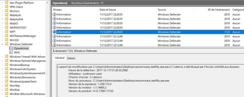 Nous allons maintenant tester l'efficacité de cette nouvelle fonctionnalité, à l'aide d'un exécutable faisant office de ransomware, fournit par Microsoft et disponible à cet endroit : https://demo.wd.microsoft.com/Page/CFA