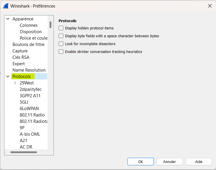 Ensuite, déroulez le menu à gauche jusqu'à trouver « protocols ».