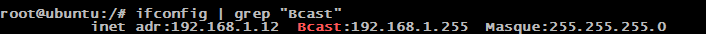 - grep « Bcast » : c’est ce qui nous permet d’isoler la ligne contenant notre IP
