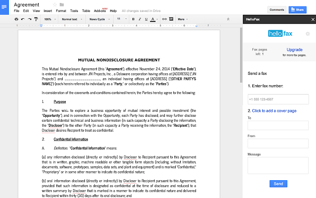 Si vous avez rarement besoin d'envoyer un fax, vous devriez songer à utiliser cette extension. Elle vous permet d'envoyer un fax directement depuis Google Docs avec une page de couverture si vous le souhaitez. Il suffira ensuite d'indiquer le numéro de téléphone sur lequel envoyer le fax.