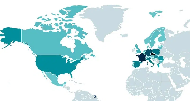 "Le nombre de cibles potentielles va d'une seule victime par pays à 250, selon les données télémétriques d'ESET", précise le rapport. La heatmap publiée par ESET montre que la France fait partie des pays les plus impactés.