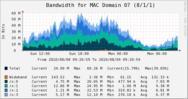 La métrologie permet l'établissement d'un "base-line" qui est une ligne de référence de l'état du réseau à un instant T ou pendant une période dite de référence. Cela permet en général de détecter des comportements anormaux qui sortent de l'ordinaire comme des pic de charge, des pertes de performance, etc ... Parmi les outils de métrologie on pourrait noter Cacti et Munin qui sont probablement les plus connus en mode libre.