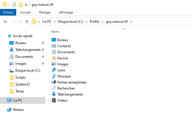 Par défaut, lorsqu'un utilisateur ouvre une session sur une machine, son profil est stocké dans "C:/Users" ou "C:/Utilisateurs", avec à chaque fois un sous-dossier par utilisateur.