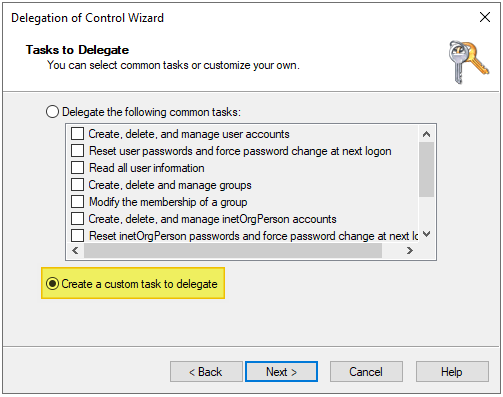 Nous allons créer une délégation spécifique, choisissez "Create a custom task to delegate".
