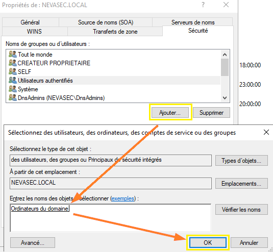 Cette permission existe pour une raison : les ordinateurs du domaine utilisent les mises à jour dynamiques pour publier ou renouveler leurs enregistrements. Supprimer cette autorisation sans précaution peut donc perturber la connectivité.