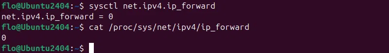 Avant d'évoquer la configuration, nous allons regarder l'état actuel de la machine. Pour savoir si l'IP forwarding est activé ou désactivé sur votre machine, saisissez cette commande :