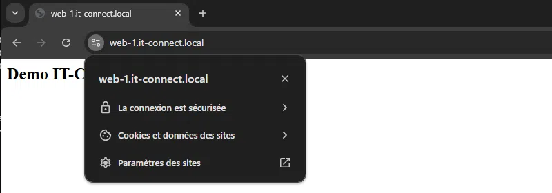 Remarque : grâce à cette méthode, le certificat sera reconnu si l'on se connecte sur https://web-1.it-connect.local ou tout simplement sur https://web-1.