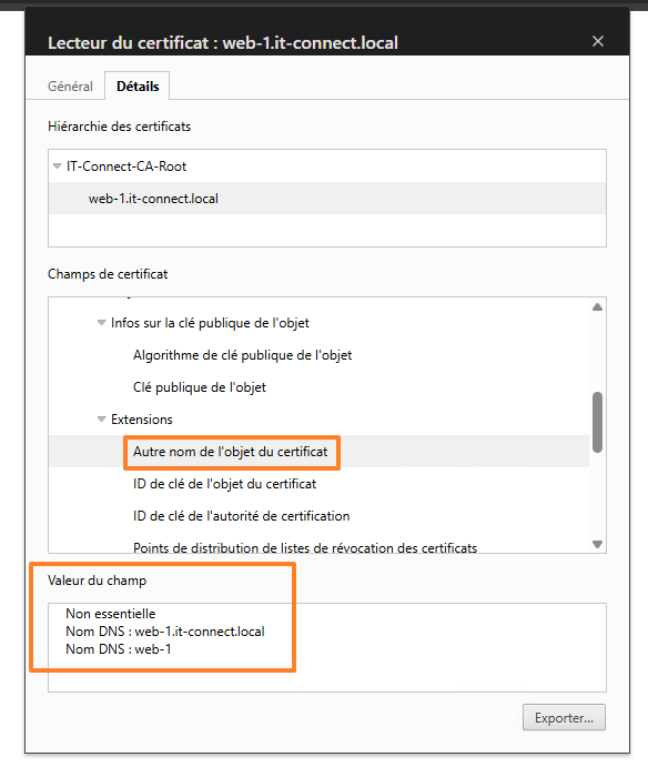 subjectAltName = DNS: web-1.it-connect.local, DNS: web-1