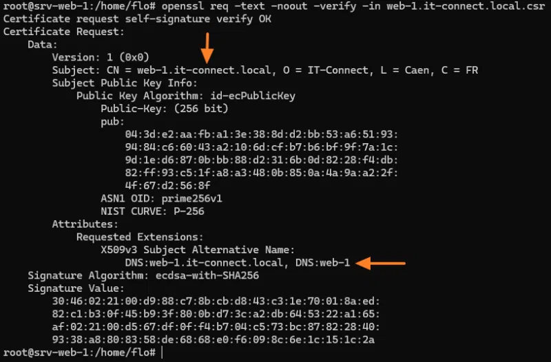 openssl req -text -noout -verify -in web-1.it-connect.local.csr