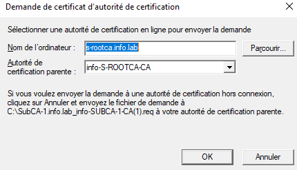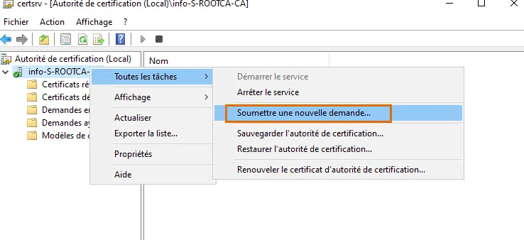 Nous avons copié la demande du renouvellement dans un dossier sur le serveur d'autorité racine, il nous reste plus qu'à effectuer la demande.