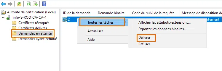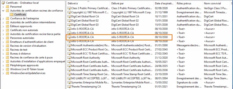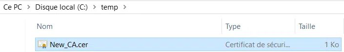 En règle générale, si l’autorité de certification est intégrée à Active Directory, la distribution du certificat s’effectue automatiquement sur l’ensemble des machines du domaine.