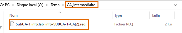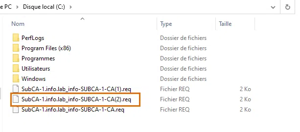 Sur la racine du disque C:\, récupérez le fichier de demande de certificat (.REQ) qui vient d’être généré.