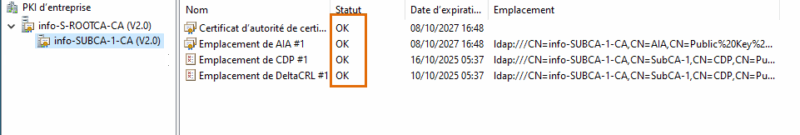 Maintenant que nos deux certificats, racine et intermédiaire, sont fonctionnels et accessibles, il est recommandé d’effectuer quelques tests de validation et de bonnes pratiques.