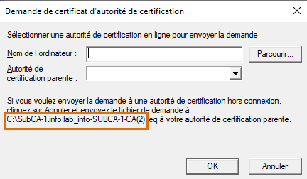 Pour ce faire, copiez le fichier CRL du certificat racine offline sur votre serveur intermédiaire, puis entrez la commande suivante en spécifiant le bon chemin et nom du certificat.