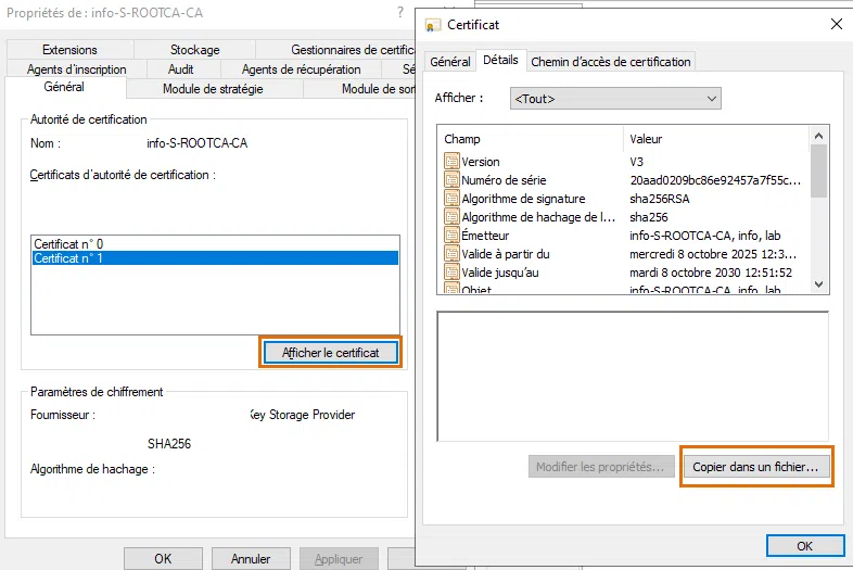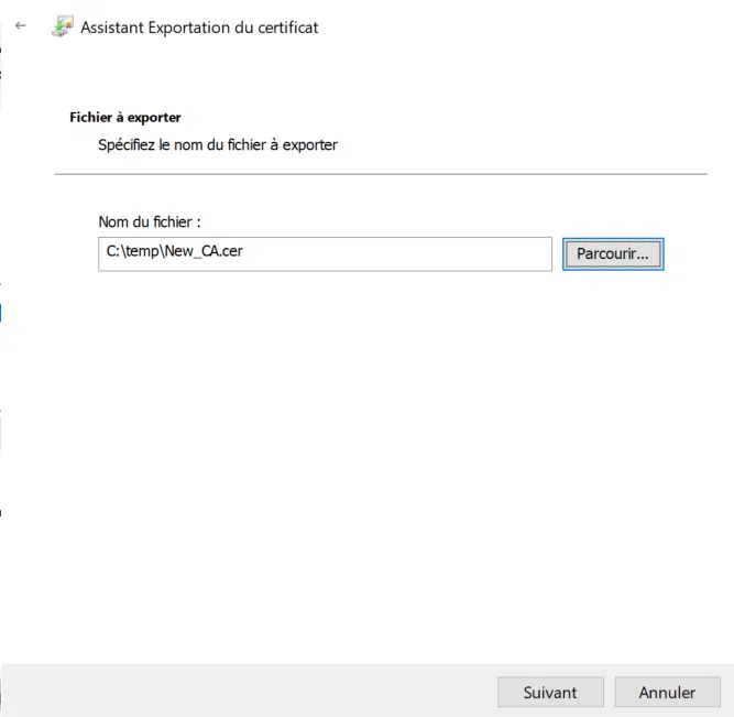 Il est tout à fait possible d’effectuer l’ensemble de ces opérations en ligne de commande à l’aide de l’outil Certutil. Cependant, cette approche n’apporte pas de réel gain d’automatisation, car le renouvellement d’une autorité de certification reste une opération ponctuelle et sensible.