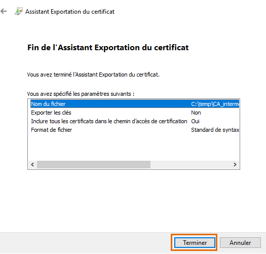 Votre certificat sera bien exporté dans le chemin choisi, il ne vous reste plus qu'à le déployer par GPO.