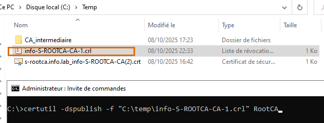 certutil -dspublish -f "C:\Temp\Nom_du_fichier.crl" "RootCA"