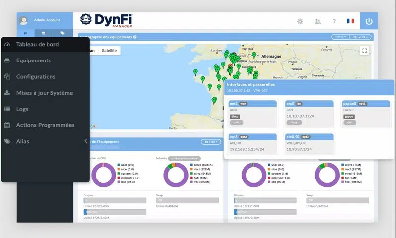 DynFi Manager est une solution centralisée permettant de gérer et superviser plusieurs firewalls à partir d'une interface web unique, ce qui facilite l'administration des politiques de sécurité et des configurations réseau. Cette solution offre des fonctionnalités de supervision en temps réel, de déploiement automatisé de configuration, et de gestion des mises à jour. Par ailleurs, il assure la sauvegarde régulière des configurations et permet une restauration rapide en cas de besoin.