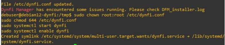 Ensuite, attribuez les droits nécessaires sur le fichier de configuration "dynfi.conf" et lancez DynFi :