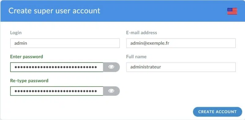 Une fois l'interface accessible, générez un mot de passe fort pour le compte administrateur.