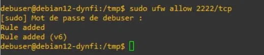 Ensuite, ouvrez le port "2222" sur votre serveur Debian afin d'autoriser les futures connexions :