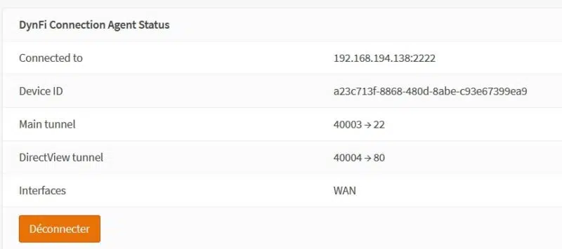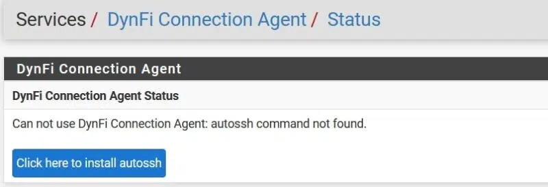 Maintenant, allez dans "Services / DynFi Connection Agent", installez "autossh" pour maintenir la session active avec DynFi, puis connectez-vous.