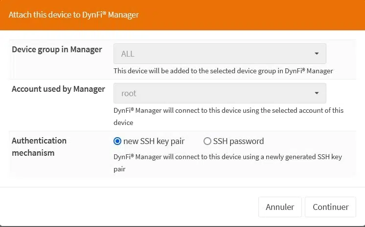 Par défaut, la connexion par token utilise le port 2222. Toutefois, vous pouvez configurer DynFi pour utiliser un autre port si nécessaire. Pour cela, comme précédemment, modifiez simplement le fichier "/etc/dynfi.conf". De plus, n'oubliez pas d'ouvrir le nouveau port configuré sur le pare-feu du serveur DynFi.