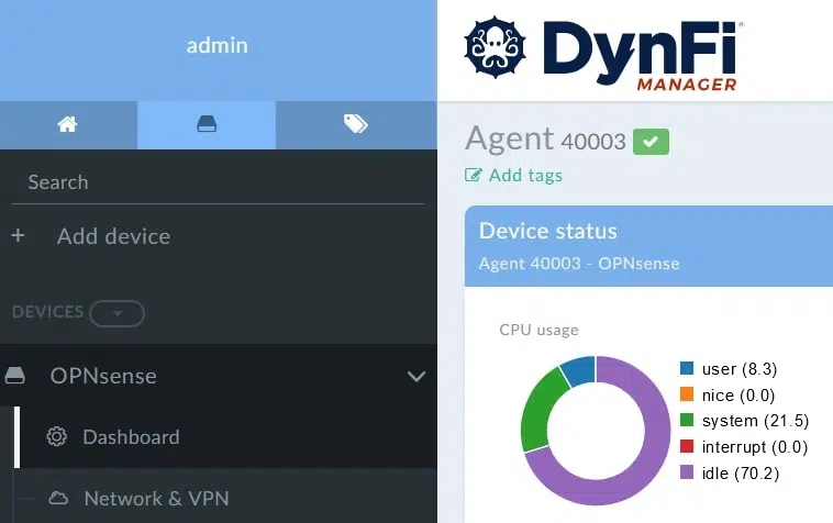 Sur l'interface de DynFi, vous devriez voir votre firewall OPNsense ajouté à vos appareils.