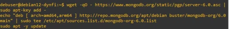 echo "deb [ arch=amd64,arm64 ] http://repo.mongodb.org/apt/debian buster/mongodb-org/6.0 main" | sudo tee /etc/apt/sources.list.d/mongodb-org-6.0.list
