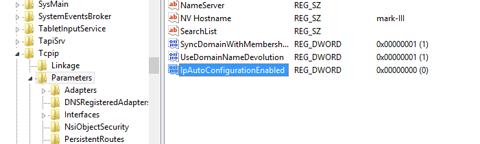 - HKEY_LOCAL_MACHINE\SYSTEM\CurrentControlSet\Services\Tcpip\Parameters