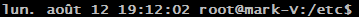 Par défaut, le "prompt" ou terminal affiche le nom de l'utilisateur avec lequel nous sommes connecté, le nom de la machine ainsi que le chemin où l'on se trouve. Comme suivant :
