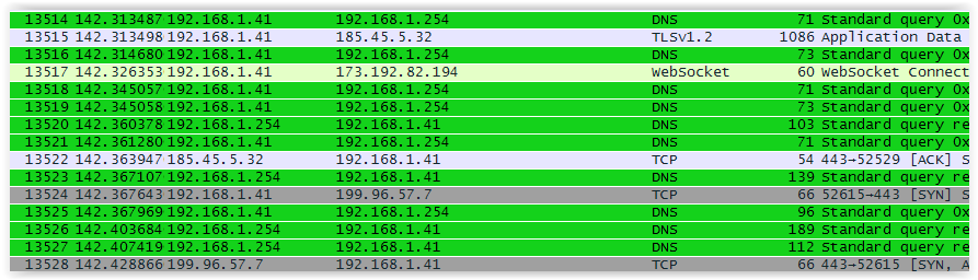 Ici par exemple, je décide de mettre les paquets relatifs au protocole DNS en UDP avec un font vert. Une fois que j'aurais validé ce paramétrage, je pourrais retourner dans ma capture réseau pour observer ma modification :