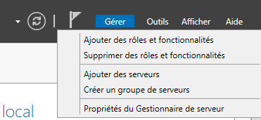 A partir du Gestionnaire de serveur, cliquez sur "Gérer" puis "Ajouter des rôles et fonctionnalités" comme ceci :