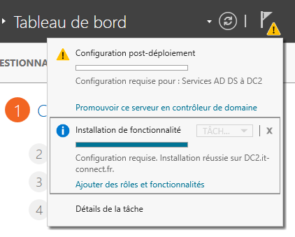 Avant de commencer ce tutoriel, assurez-vous d'avoir joint au domaine le serveur qui a pour vocation de devenir contrôleur de domaine. La réalisation de ce tutoriel se passera en deux étapes : l'installation des rôles et fonctionnalités puis la promotion en tant que contrôleur de domaine.