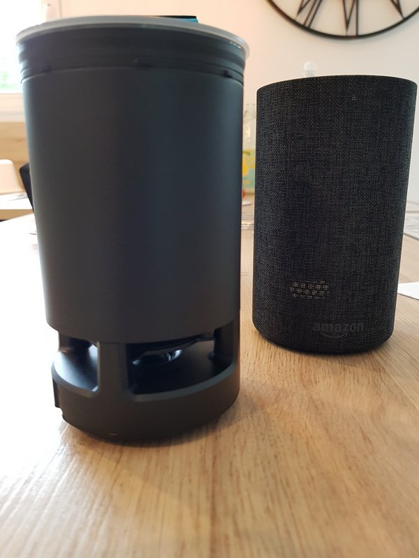 Il est à noter que lorsque l'on appelle "Alexa", le cercle lumineux sur le dessus de l'enceinte s'allume en bleu complètement. Lorsque vous parlez ensuite, le cercle bleu s'allume de façon plus clair en fonction votre position par rapport à l'enceinte, celle-ci indique où elle détecte le son de votre voix.