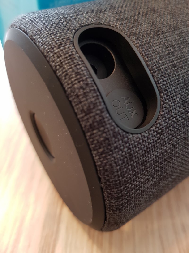 L'enceinte dispose d'un port pour son alimentation et d'un autre port sortie auxiliaire au format Jack.