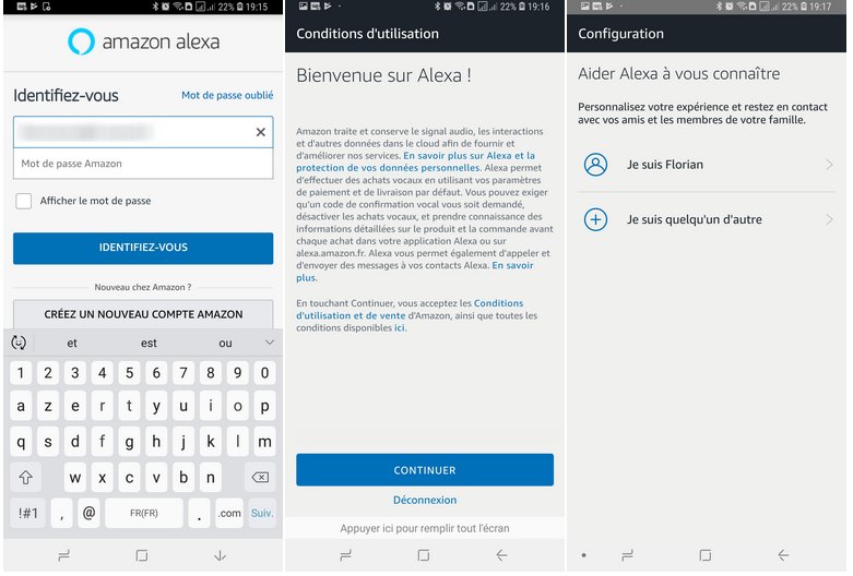 La mise en service de l'Amazon Echo s'effectue directement depuis l'application mobile, que vous trouverez gratuitement sur le store Apple ou de Google en fonction de votre appareil.