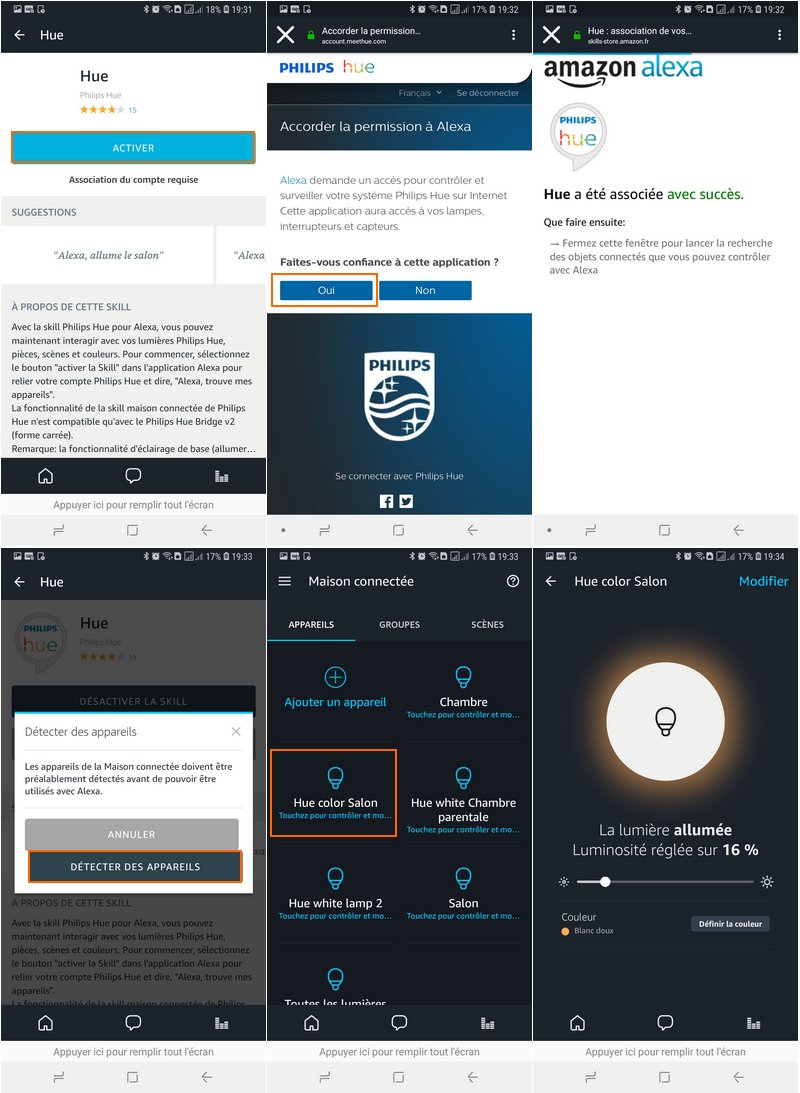Voici quelques copies d'écrans qui vous montre comment ajouter Philips Hue à Alexa :