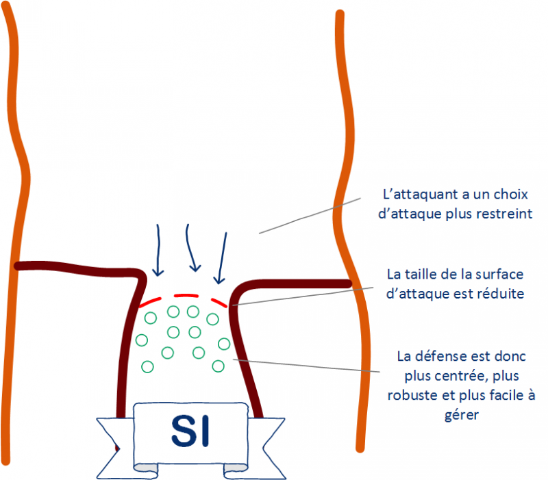 Il faut savoir qu'une vulnérabilité sera forcément nuisible lorsqu'elle est présente sur un point d'entrée du système d'information. Ainsi, plus la surface d'attaque est petite (peu étendue), moins les vulnérabilités, et donc les possibilités d'attaque et d'intrusion, seront nombreuses (mais pas forcément de moindre impact !).