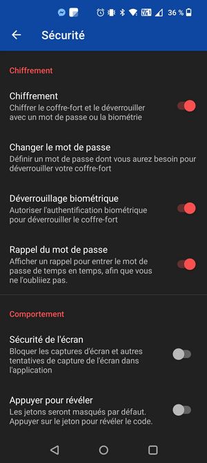 Au sein des applications de ce type, la sécurité et les options proposées sont importantes. Tout d'abord, il faut savoir qu'il n'est pas possible d'effectuer des copies d'écran de l'application, à moins d'activer la fonctionnalité dans les options : ce que j'ai fait afin de pouvoir illustrer mon article.
