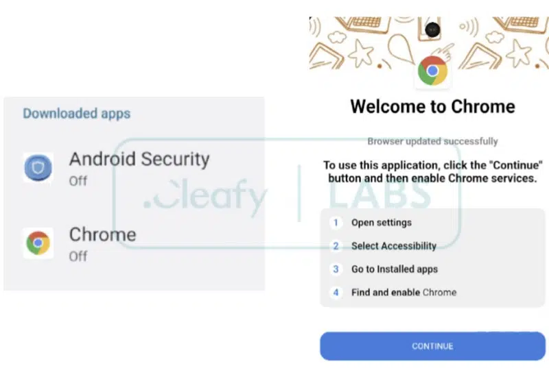 Les cybercriminels n'hésitent pas à déguiser ce malware en fausse application, telles que Google Chrome et Google Play Store, ou encore "Android Security" pour tenter de piéger les utilisateurs. "Dans ce cas, le logiciel malveillant est déguisé en applications de sécurité génériques, en services Google ou en applications bancaires courantes.", peut-on lire.