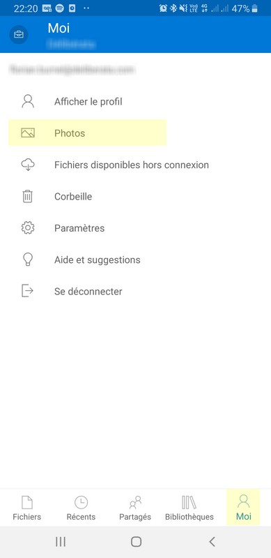 Je pars du principe que l'application OneDrive officielle est installée sur votre téléphone et que votre compte Office 365 est connecté.