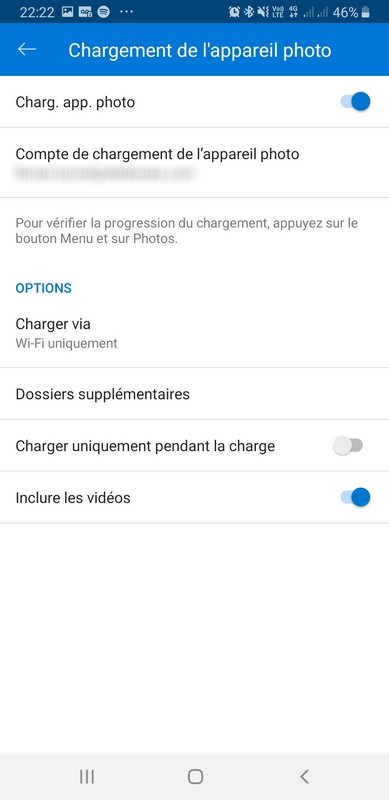 - Charger via : sauvegarder vos photos seulement en Wi-Fi, seulement en 3G/4G, ou les deux. Attention si vous activez le chargement sur le réseau mobile, veillez à avoir un forfait avec suffisamment de data surtout pour la première synchronisation qui peut s'avérer très lourde.