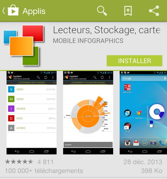 Cette application est pratique pour visualiser l'état du stockage de son téléphone ainsi que pour détecter d'éventuels fichiers volumineux.