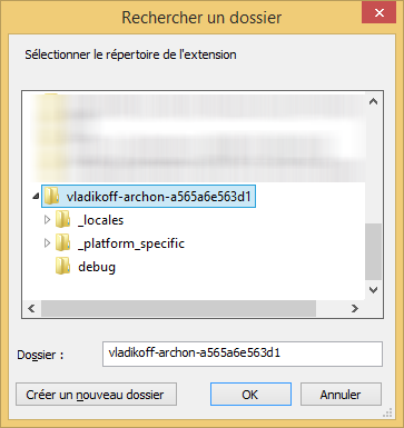 Retournez dans Chrome dans la partie Extensions comme toute à l'heure, et, cliquez à nouveau sur "Charger l'extension non empaquetée...". Là encore, indiquez le dossier de données comme nous l'avions fait pour installer ARChon :