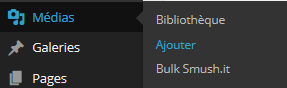 On va commencer par uploader notre image (dans un format assez petit car l'image n'est pas facilement réductible lors de son affichage). Je choisis par exemple l'icône d'IT-Connect en 48px * 48px. On va donc dans notre Back-office WordPress et on se rend dans "Média" puis "Ajouter" :